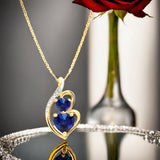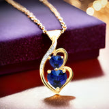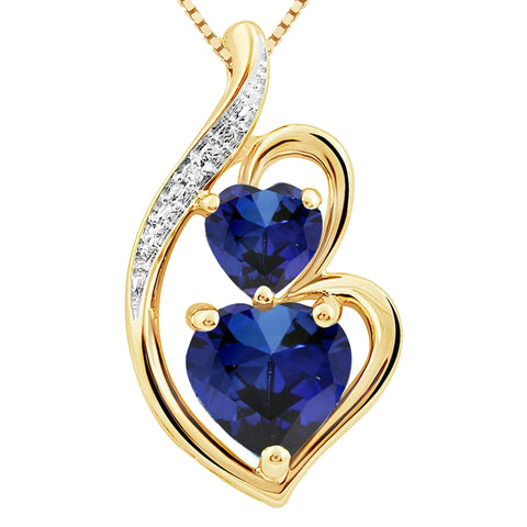 - Sapphire Double Heart Necklace - Choose this classic Lab Created Blue Sapphire Necklace for someone special in your life or treat yourself. Sapphire is the September birthstone, but lovely for any occasion. It is also beautiful as a bride's something blue.