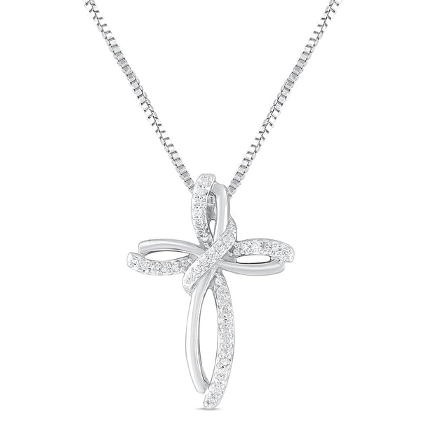 Diamond Cross Necklace 1/4 CTTW in Sterling Silver