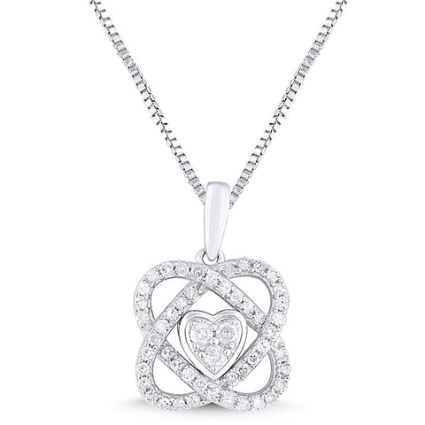 Diamond Necklace Love Knot Pendant 1/4 cttw in Sterling Silver or 14kt Yellow G...