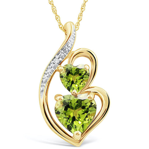 - Gemstone- Heart Shape 7 MM Natural Peridot and Heart Shape 5 MM Natural Peridot - 1 Round Diamond Accent (I-J Color, I2-I3 Clarity)